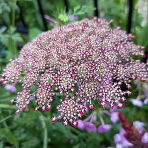 ブラックレースフラワー 赤い小花がギッシリ〜庭植えでインパクトありデス✨