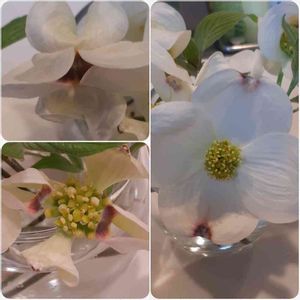 こんにちは😊 ここ数日間夏日が続いていて今日は☔湿度が高めでもほっとしました😌 ハナミズキ・クラウドナイン 切り花にして観察してました🧐 苞がパカンと開き、花序が見えてきました↙️😃✌️ ちょっと感動(‘0’)4ミリほどの小さなお花たちが集合💛💛 花弁に見える苞は、ここに花があることを虫や鳥に教える役割があるそうです😮貝のように合わさった苞が開いて行くんですね👀