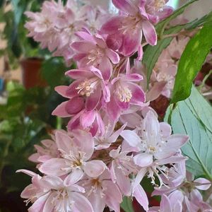 おはようございます😊 雨は上がり午後から晴れるようです☀️ 皆様の地域が雨の被害に遭われませんよう祈ります🙏 先日、ウツギのとても可愛らしい花色、姿形のお花に魅了されました💗✨ 品種が分からず店主さんにお尋ねし更紗空木(サラサウツギ)と知りました🎵自宅の庭で栽培されているそうでグリーンやお花が店内あちらこちらに 💞💮🌿🌻 癒される空間でした🍀 ☕にて
