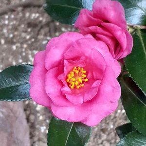 おはようございます☀️ 昨日夕方🐩散歩中の坂道で真正面に欠けていく美しい月を眺めながらの散歩となり感動(‘0’)🌔🌓🌙✨✨✨ 花つきが多すぎてお花が小さい 山茶花💞その2 艶々🌿 実家にて