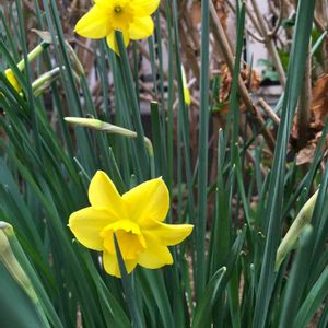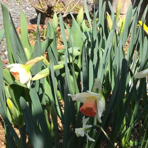 春の訪れ🌿 変わった色合いの水仙が咲いて来て、 チューリップも花芽が伸びて来ました🌼🌷 暖かな日差しに春を見つけています☀️🐝