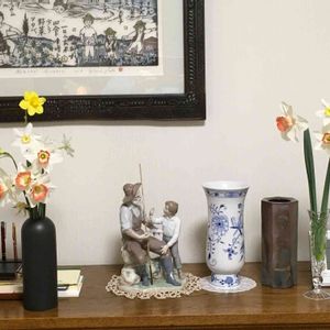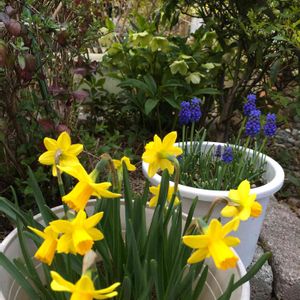 春の訪れ🌿 暑さで咲いた水仙を夕方カット✂️し 花瓶に活けました💚 昨年植えた球根から色んな花が咲き ビックリです🌼🌸🌼💞