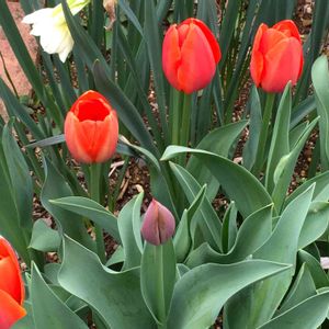 春の訪れ🌿 赤系統が先行してチューリップが咲いて 来ました🌷🎶🌷 赤・白・黄色と揃い踏みとはいかなかった ようです😅