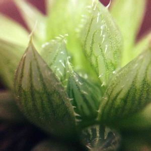 秋に紅葉するらしい、センペルビウムの「サン🌞ドロップ」 葉っぱのシマシマ模様🦓が好き 🦓追記🦓 実際のお色は、もう少しスモーキーな黄緑です ⏩次へ続く
