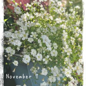 カスミソウ➰いつも脇役ばかりですが、本日は主役に抜擢‼️寄せ植えのコスモス待ちのカスミソウ➰ 地面に植わったカスミソウは、花束のより、なんだかたくましいᕙ('ω')ᕗ