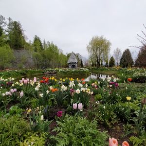 花はチューリップや水仙、 ムスカリなど球根草中心 宿根草も少しづつ咲きだしてる 感じです