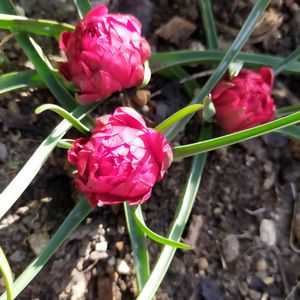今年のチューリップの第一号は 原種チューリップ プルケラテタテタ 舌噛みそう