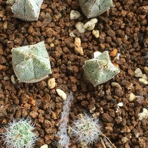 ホームセンターで買ったさぼてんのタネ(混合)の実生2年目。 ランポーらしいサボテンがあるのが嬉しい♡