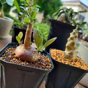 塊根3兄弟🥔 間延びしたネルビアは 挿木出来るようなので✂︎に挑戦 どれもいまいち休眠期が わからない🧐