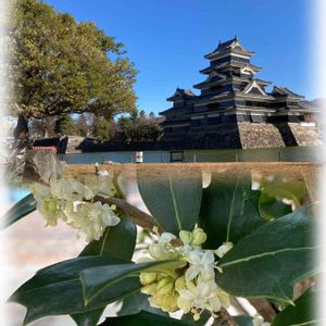 今日のお花 ヒイラギ ⬆️ ヒイラギの木と松本城天守閣 ⬇️ ヒイラギの花 過去pic