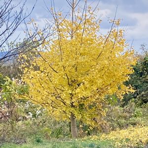 散歩道の小さなイチョウの木も、真っ黄色になりました。きれいだなぁ😍