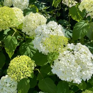 今年も、白いアナベルがたくさん咲きました。蕾の薄いグリーンとのコントラストがきれいです😍