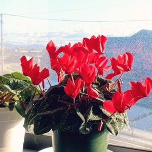 燃える様な色に魅入られ購入す 篝火花( かがりびばな )の和名ある花 3年前の冬、この赤いのが、いかにもシクラメンらしく思えて購入しました。あれから毎年咲いてくれます。昨年、Googleで和名を知り、驚きました。篝火花とは、言い得て妙なりです。