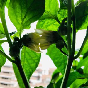 相思相愛💕パプリカの花🫑 サラダで食べたパプリカの種を蒔いて、育てた子が大きくなりました 葉っぱの陰で、 見つめ合ってChu💋 そんな風に見えました…笑笑