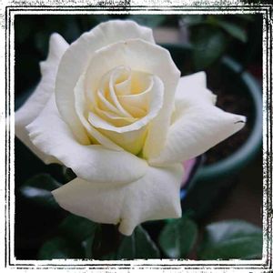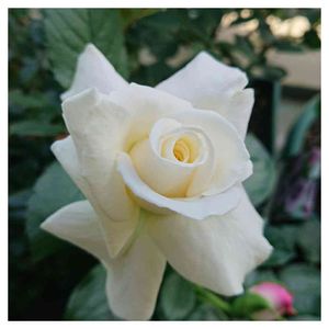おはようございます。タイタニックが咲きました。でも真っ白。タグによると本当ならピンクの縁取りがあるはず。 新苗なのできっと縁取りのこと忘れているんだろう。 思い出してもらえるようにお世話頑張るぞp(^-^)q
