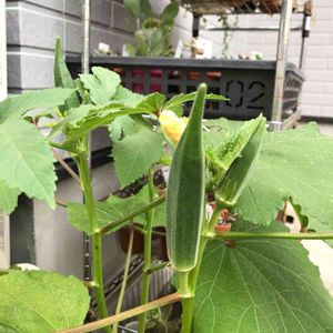 オクラ初収穫🌱 まだまだ蕾があるので収穫できそうです♬