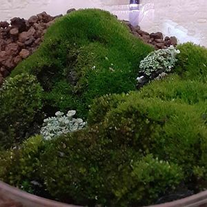 家族が作ったコケリウム。 苔の間に地衣類も。