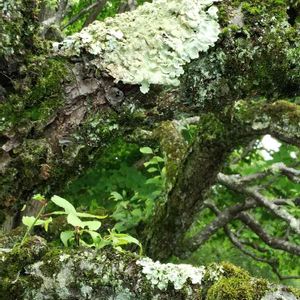 朽ちて倒れた木に びっしり地衣類が育ってます。 それとも地衣類に 枯らされたのかな