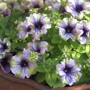 ペチュニア アマゾナスプラムコカトゥー 昨年皆様のお写真を拝見してクリップしておいたペチュニア♡︎ᵎᵎᵎ♡̷︎♡⃜︎♡⃡︎ 3月にお迎えできました💕 まだ気温も低かったおかげか、花持ちがとてもいいのにビックリです。 この1ヶ月で花柄積みは2回だけ。 気に入りになりそうです(*ˊ˘ˋ*)。♪︎:*° 留守が多いので、今は鉢に仮植え、これから花壇に植え混みます。