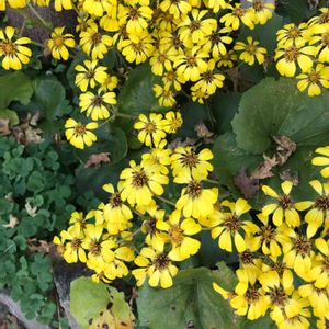 つわぶき(石蕗) ですよね? 蕗(ふき)の名が入っていますがふきでわないという事です。葉っぱがふきににてるから、だそうです。