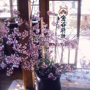伊豆下田、慶応三年創業の金谷旅館。 玄関の桜が迎えてくれました。