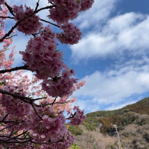 早春の旅 河津桜を見にきました 今年は開花が遅れているとのことです 早朝3時半自宅を出発🚗 氷点下4℃の北陸を抜け出し 凍結&積雪の高速道路を走ること500㎞ 3ヶ月前から計画していた旅なので 休暇もとったし、寒かろうが雪が降ろうが行くしかない😅 太平洋側は別世界 青空💙 旅の目的地の一つは河津桜💕 2年前の同じ時期には満開だったけど今年は数輪咲いているだけ ちょっと残念💦 でもよく見ると綺麗な濃いピンクのつぼみ🩷 この時期ならではの力強さを感じます やっぱり来てよかった😄 今夜はお気に入りの温泉宿で宿泊です