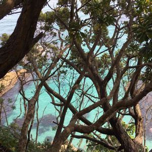 旅行先で見つけました(ˊo̶̶̷ᴗo̶̶̷`) 伊豆 田牛のエメラルドグリーンの海を隠すように木々が覆います。勝手な妄想ですが、この先は急な斜面なので、何か守ってくれてるような、そんな気持ちになりました(*´ω`*)