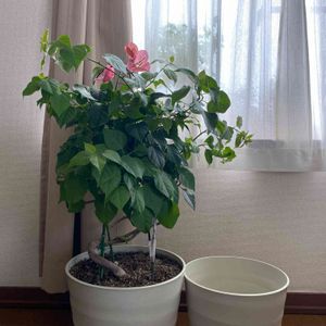 鉢を小さくします。 出窓に出してたけど、重すぎる気がして😅。 水やりのため、上げ下げするのも重いし。 お花もけっこう楽しんだので、サイズダウン。 植え替えます。 29/23℃ くもり時々晴れ