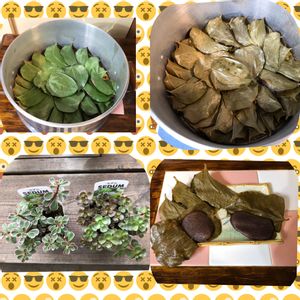 お疲れ様です✨🌷😄 …今日は雨がすごいです〜ッ☔️時々雷ゴロゴロゴロ§§ピカ!§§ドーン!!😱…そんな日にも負けず…🤔😳🤣郷土菓子作ってみました〜ッ❗…サルトリイバラの葉っぱ𓂃𓂂🍃でお団子😋鹿児島では、…かからん団子…と言います…😲かからん…の言葉は、サルトリイバラにはトゲがありますので触ると痛いから、…触らない🖐…を、…かからん…と言います…😄例えば、…触らない方が良いよ…=…かからん方が良いよ…みたいに使います…😊…が、しか〜しッ❗今の若い子達はほとんど鹿児島弁使いません…😭…って言うか通訳入れなきゃ分かりません😅😂🤣😭 って事で、左上から…団子を葉っぱに包んで…小さい葉っぱは2枚にして挟んで…➡️蒸して…⬇️出来上がり左下は昨日HCに用事があって、可愛い多肉ちゃん見つけてGETしてしまいました〜ッ😅😋