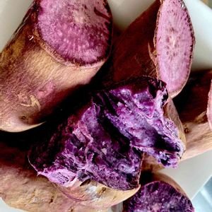 紫芋の 焼き芋を 作りました お料理本の写真のようには 美味しそうに撮れない💦 アントシアニンが疲れ目に効くといいけどネ🎵