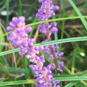 台風15号で落ちた蜂の巣の側に 群生しているヤブラン ヤブランの上に巣が落ちないでよかった🎵