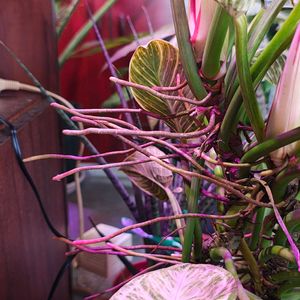 モンステラの根っこについて。 今部屋に入れた時点での根の様子です。 スリットから出てきた根が受け皿内でほぼ1周してます。後ろ向きの気根は夏に1m位伸びてたやつはカットしてます。2枚目の太いやつ。細いのは放置してます。 3枚目の気根は上から太いのが降りていて、土に潜れず地表で巻いてる状態です。 こんな適当な根の管理でも、比較的水多めでもまず失敗したことがありません。もちろん今の時期に挿し木するのはNGですが。適期にやるなら最終的に胴切りして更新に使いたいトップ側の気根を鉢に入る長さに調整してやればいいです。こんな事を毎年やってますが、これで夏の葉が毎年60cm超えるんだから間違いではないと思われます。 そして、過去に大皿みたいな深さの無い鉢に植えられてた70cmオーバーの葉を持っていたデリシオーサが売ってるの見たことがあります。 モンステラには実はそれほど容積の大きい鉢はいらなかったりします。 12号まで付き合ったノリナに比べたら全然余裕ですよ。