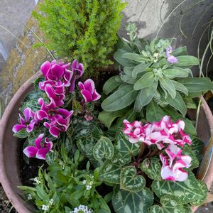今晩は 定期検診の時歯医者さんの寄せ植えです 今月はシクラメンですね 素敵ですネ(*˘︶˘人)*。+₍ᐢ..ᐢ₎~❤︎゛