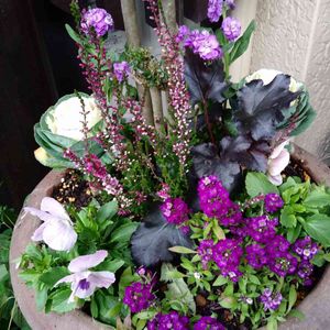 めっちゃシンプルのトーンの渋めの寄せ植えです✿.*・ カルーナにダークオパールバジルにヒューケラです𖧷