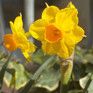 「今日のお花」水仙。 2月の庭のpicです。 水仙さんの花言葉。 『自己愛』『うぬぼれ』 清楚な花のイメージと、ちょっと違いますね😃