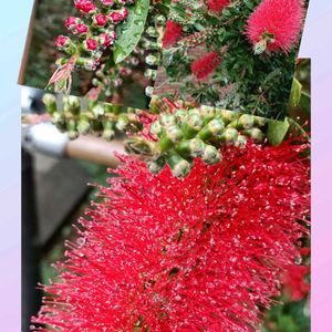 駅前のブラシの🌳 今年も咲いていました😆 雨の日の方がブラシに雨粒が光ってキラキラ✨ 綺麗に見えると思いませんか…❓😆 今日はたまたま雨の日で、ブラシの木がいい感じになっていたので、☂️をさしながら、(*ˊᵕˋo📷oパチリ✦*😅 駅前で、怪しい人と思われたかも…🙄🤣