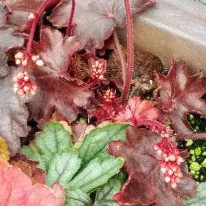💕ヒューケラ💕 暑いです🌞😵💫😵💫。 暑くなる前に伸びている木々をカットしました。 ヒューケラの花芽見つけました。