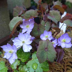 タツタソウ 竜田草 あら?めずらしい雪割草⁇と思ったら、タツタソウでした(^^) 水色と紫の中間くらいの上品な色です(๑˃̵ᴗ˂̵)