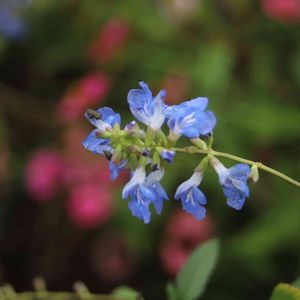 ボッグセージ 別名:サルビア・ウリギノーサ シソ科アキギリ属の多年草です。沼や湿地に生育する草丈1mにもなるサルビアの仲間です。 良く分枝して直立します。 葉は長楕円状披針形で縁に鋸歯があり対生します。 花の基部は白く、スカイブルーの下唇には受粉のために虫を導く白い蜜標があります。 萼には赤い小さな斑点があり、雄しべは2本雌しべは1本です。 🏷美しく青きドヨウ 🏷青い花マニア
