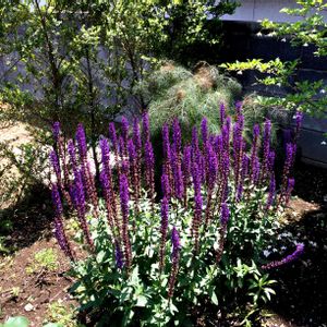 風にゆらゆら揺られて涼しげです。咲いてる時期がけっこう長い気がします。1㍍以上にもなってスタイリッシュな花。 名前間違ってたので追記💦 サルビアウリギノーサ Salvia uliginosa またはボッグセージとも呼ぶみたいです。