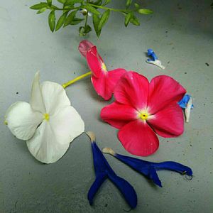 今朝は曇りがち、落ちた花でもキレイです💚 土なら、そのままで土にかえるけど! ベランダはそうはいかず、掃きそうじが日課になってます!