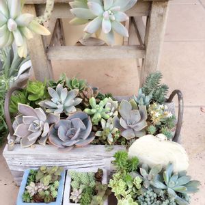 ドラム缶で作ったバーベキューコンロに ステンシルして 少しエイジング加工もたして セダムメインの多肉植物の寄せ植え 作ってみました (*^^*)