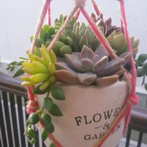 今日は寒い~~❗ ホワイトデーに同性から義理チョコをもらったので、お返しに寄せ植えしてプランツハンガーも簡単に編んで✨🎁✨プレゼント✨ 仲良し仲間四人で義理チョコ渡し、楽しんでます☺だからホワイトデーのお返しもあります🎵