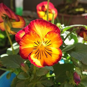 濃紫、紫、赤紫 赤、橙、山吹、黄 暖かみを感じさせる 秋色グラデーション 虹色スミレ・メープル 太陽の光を浴びると 黄金色が加わり 一層輝きを増す まるで小さなお日様が 微笑んでいるかのように 明るく咲き誇る あなたを見つめていると じわじわ じわじわと 心が温まっていく 近付けば 甘く心地よい香りも漂う 最高のひなたぼっこ *** 初めて行った素敵な場所からの帰り道 初めての道で偶然見つけたお花屋さん その店頭に並べられていた 色とりどりの虹色スミレに一目惚れ 暖かみのある花色に惹かれて メープルさんをお迎えした 後で気がついた 初めてお花とリンクコーデしてた なんて素敵な思い出 ❤️😊❤️ 撮影: 2021.11.5 お迎え: 2021.11.4 ❤️🧡💛💛🧡❤️❤️🧡💛💛🧡❤️❤️🧡 パンジー 「虹色スミレ」 💜💙💛💛💙💜💜💙💛💛💙💜💜💙 【分類】スミレ科 スミレ属 【学名】Viola × wittrockiana 【英名】 Niji-iro-sumire ("Rainbow-colored violets") 【原産】北ヨーロッパ 【生活型】耐寒性1年草 冷涼な気候、日当たりと 水はけのよい環境を好む。 【開花期】秋から春 【花言葉】「もの思い」「思い出」 「私を思って」 ・花径約5cmの中輪 ・次々と花が咲く。連続開花性。 ・虹のようなグラデーション🌈 ・全品種に色幅がある。個体ごと、1株ごとに微妙に変化する。覆輪とならない単色の個体が発生することもある。 ・季節によっても花色が変わる。気温が下がってくると、くっきりと鮮やかな色彩になる。「メープル」は、寒くなると赤みが強くなる❤️ ・定期的に殺虫剤を散布すること。長雨のときは灰色かび病の予防のため殺菌剤も。 ・虹色スミレの売上金の一部は、日本乳がんピンクリボン運動に寄付される🎀 …… 参考資料 (1) 花ラベル 参考ウェブサイト (1)「パンジー 虹色スミレ® シリーズ」サカタのタネ https://www.sakataseed.co.jp/product/search/code08pan.html (一般) https://www.sakataseed.co.jp/product/search/code15pan.html (プロ) (2)「虹色スミレ®」 https://www.sakataseed.co.jp/special/pansy_viola/nijiiro.html (3) "Episode 06 Pansy: LR(Long Run) pansy which can be enjoyed from autumn to spring" Sakata Seed Corporation https://www.sakata100th.jp/english/episode/06/ (4)「パンジーの花言葉|色別の意味や由来、怖い話とは?種類や言い伝えは?」Green Snap https://greensnap.jp/article/7865