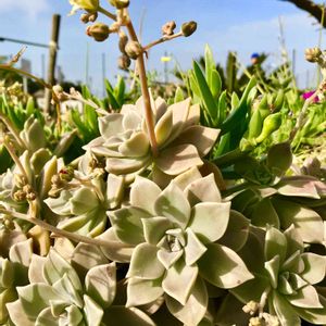 こんにちは🥰 東京の気温は25度を超えました。 青空と多肉さん✨あなただーれ? 空に向かって花芽伸びてますね🥰 公園の多肉さんがとっても綺麗です! 週末の早朝ドライブで見つけてしまった…💓