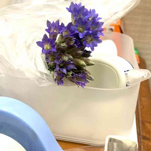 あれっ⁉️ これさっき公園で見た フデリンドウに似てるなぁ🤔 なんで私の仕事グッズのところに? あぁ〜 新発売の文房具かもしれない😆