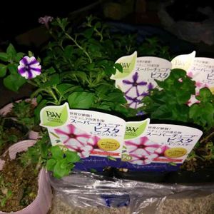 栽培してる人に聞いたら、ペチュニアの八重咲と教えてくれました。