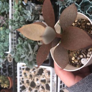 表がプロンズ色、裏がシルバーグリーンで すごくシック‼︎✨な多肉植物に出会う🌱 茶色の葉っぱの植物はどんな色の器が似合うのかなあ、なんてお店でしばらく考えていました。