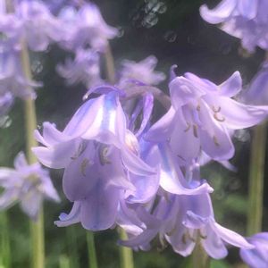 やっぱり可愛い釣鐘型のお花💜 うつむいて咲いているので一生懸命覗き込んで撮って見た〜。 一眼レフとかならともかく、スマホ片手じゃ怪しいおばさん以外の何者でも無い、、、🙄