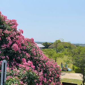 ①マドモアゼルメイアン FR メイアン嬢、左手(葉っぱ)をかざして強い日射しを避けていますね🤭 ②カーディナルドゥリシュリュー OR 梅雨明けのような暑さに少々お疲れ気味かしら…頑張れ~ ③シュラブ系のアルキミスト バラもヒトも日陰でホッ(*´-`) ④元気なクライミングローズたち ↖左上 初めましてのブルボンクィーン 可愛いピンクにキュン💓 斜めうしろにアンジェラ ↗右上 アンジェラ その足元にはラベンダー各種💜 ホワイトも咲いてました🤍 ⑤ウエルカムローズ、お花の水盤、眺望抜群の小径…など魅力的なスポットあれこれ 続・夢ハーベスト農場 🏷️木曜日は桃色 に参加します🍀